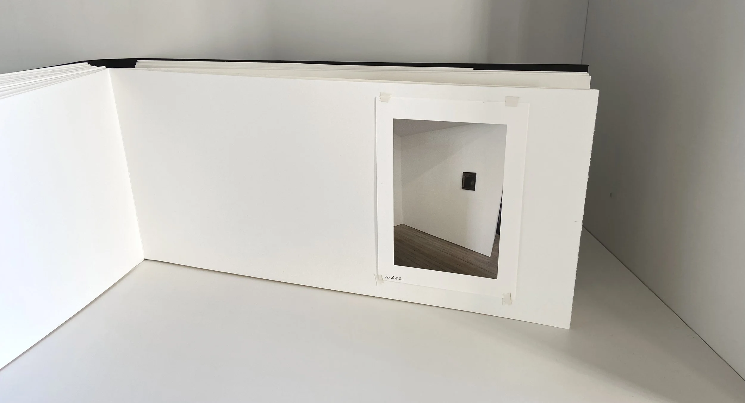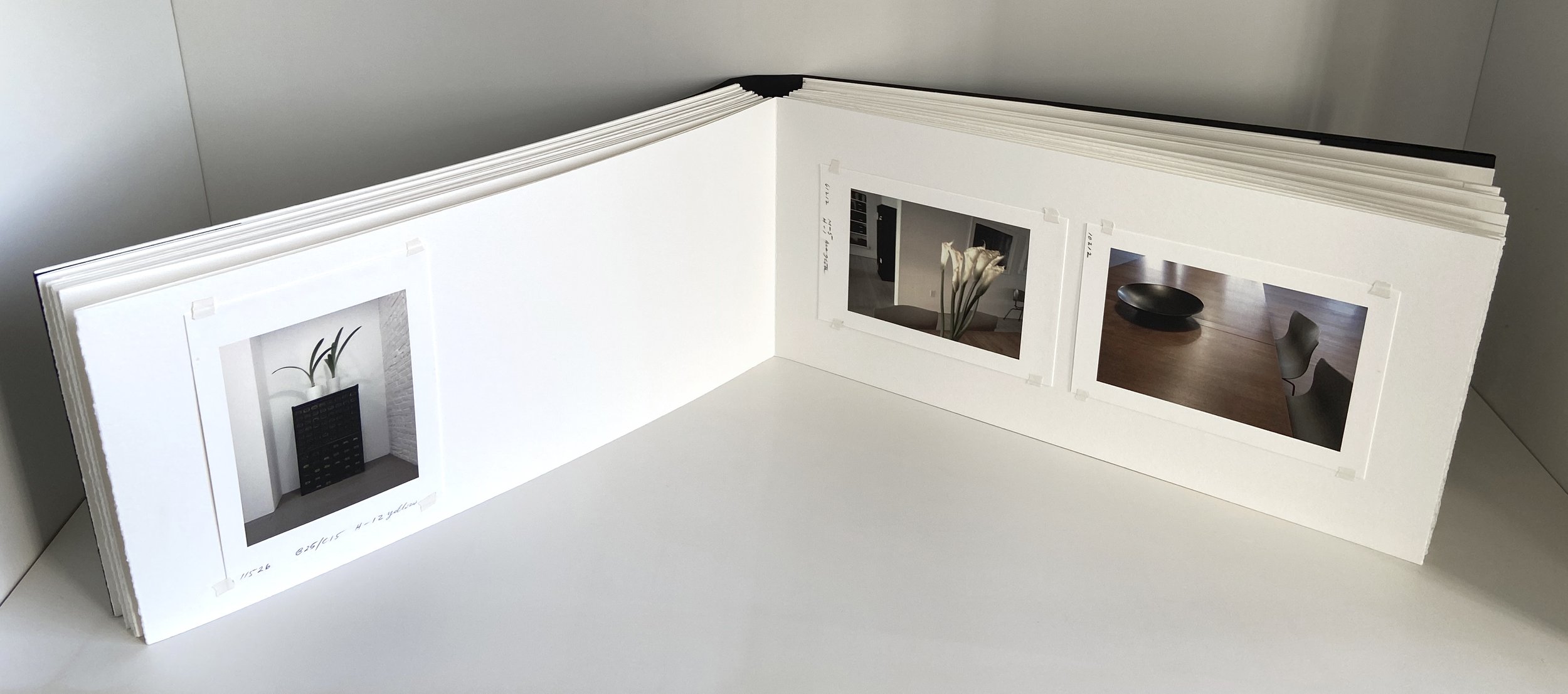 The Tofani book is a long skinny shape because it’s made of paper cut offs from an earlier project. Some of the pages have hinges showing rather than hidden in back because sometimes when patching in a page it gets confusing. The photographs are taped in place and their borders are not quite uniform. The whole thing is a bit rough. But it was a beginning.