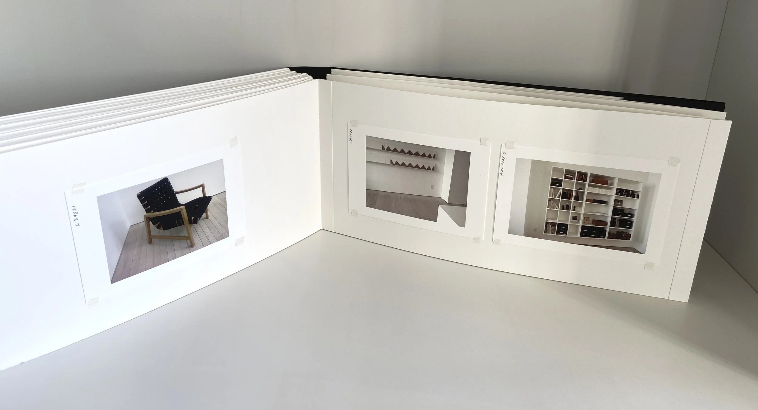 The photographs were made in our new home. The paint was fresh and white. The chair newly restored with black webbing. The just built studio book shelves were lightly loaded.